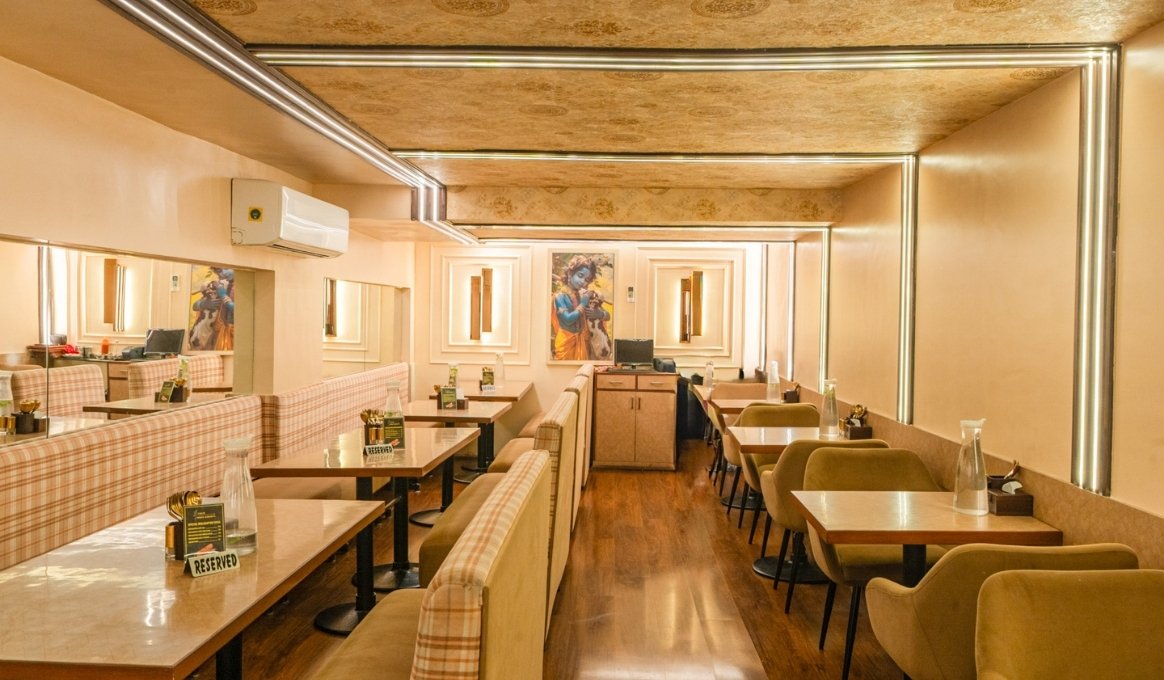 Govinda’s International offers saatvik dining with no onion, no garlic, and a fully decaf menu. Blending Indian, Asian, and Italian cuisine, the experience is serene, soulful, and elevating. With a beautiful garden area sitting for peaceful meals and candle-light dinners in the evenings, the divine ambiance and exceptional service make every visit spiritually satisfying.